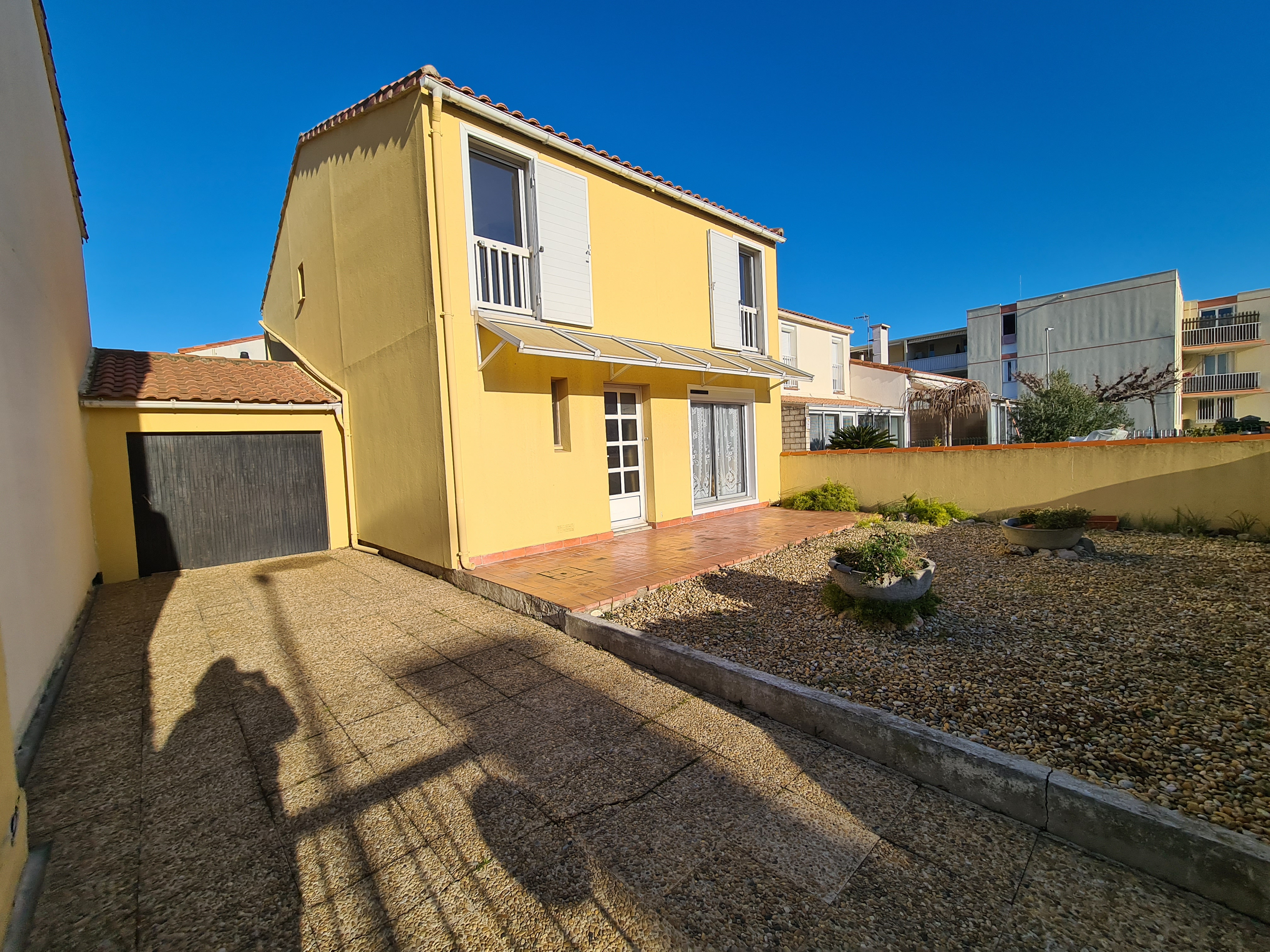 Espace côtois immobilier vous propose à la vente à Palavas-Les-Flots, rive gauche, au coeur du centre-ville et à moins de 5 minutes à pieds de la plage une très jolie maison 6 pièces d'environ 115 m² sur 232 m² de terrain. Mitoyenne uniquement par le garage, vous découvrirez au rez-de-chaussée une entrée, un salon/séjour double, une cuisine indépendante aménagée avec accès au garage, une salle d'eau et wc séparés ainsi qu'un cellier. A l'étage, 4 belles chambres, un grand dressing et une salle d'eau avec WC. Vous serez séduits par sa luminosité (traversant), sa terrasse sur l'avant (possibilité de plusieurs stationnements) ainsi que sa terrasse à l'arrière avec jardin, idéal pour vos barbecues ou repas entre amis et famille. La maison dispose de la climatisation réversible, de fenêtres doubles vitrages, volets roulants électriques ainsi qu'une chaudière gaz récente. Gros potentiel avec plein de possibilités pour cette maison. Emplacement géographique top : commerces, écoles et transports à deux pas.